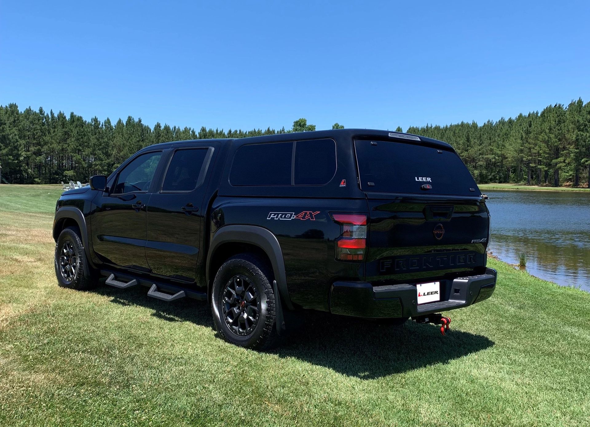 100XQ’s custom design with frameless, one-piece tip-out side windows integrates with the truck’s styling. Standards include removable screens, a curved glass rear door with hidden hinges, an interior 12V LED dome light, headliner, and 12V fuse box.